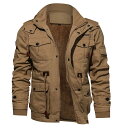 【送料無料】[KEFITEVD] 防寒ジャケット メンズ 裏ボア 作業着 防風 ブルゾン ライダース 秋冬 ミリタリージャケット 無地 冬用ジャンパー カーキ M