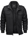 【送料無料】[TACVASEN] ミリタリージャケット メンズ バイク ジャケット 作業着 防寒 ブルゾン 綿 ジャンパー 春秋 防風 アウター 仕事着 カーゴジャケト 釣り カジュアル 色:ブラック-01、サイズ:L
