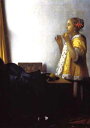 ポストカード アート フェルメール「真珠のネックレスの若い女性」105×150mm 名画 メッセージカード 郵便はがき コレクション(BK3359)