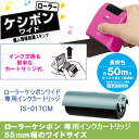 ローラーケシポンワイド専用インクカートリッジ IS-017CM 38-129本体サイズ W66×D29×H27mm インク 油性顔料インク (耐水、耐光、耐薬品性に優れて隠ぺい力の強い顔料系油性インク) 本体 ローラーケシポン ワイド 特徴 広範囲を消すのに最適!!ローラーケシポンワイドのカートリッジ サッと取り出してポンッと簡単に入れられるカートリッジです。 印面は55ミリ幅で約50メートル分。 1回60ミリとした場合約800回分捺印できます。 ダイレクトメールの宛名や印刷物に多いゴシック体・明朝体を見えにくくします。 はがきや封筒だけでなく、段ボールのようなデコボコした面や曲面にも使用可能!! 段ボールに貼られた宅配便伝票や明細書など広範囲を隠す時に最適です。