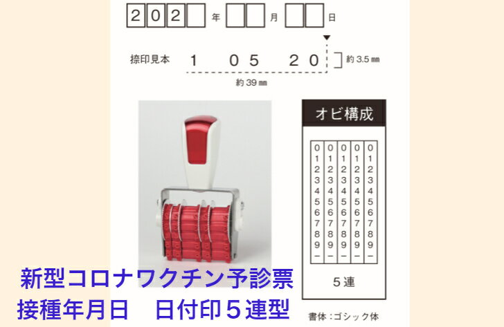 新型コロナワクチン予診票 接種年月日 日付印5連型(ワクチン接種予診票 接種年月日に対応5連・14級・11段)送料無料
