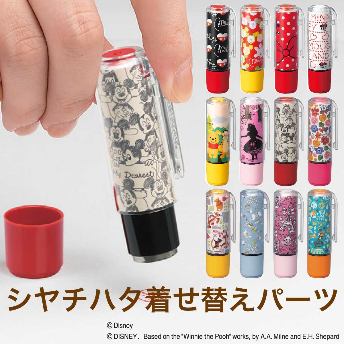 シヤチハタ ネーム9専用着せ替えパーツディズニーキャラクター クリップホルダー・キャップセット【ミッキーマウス・ミニーマウス・プーさん・アリス】