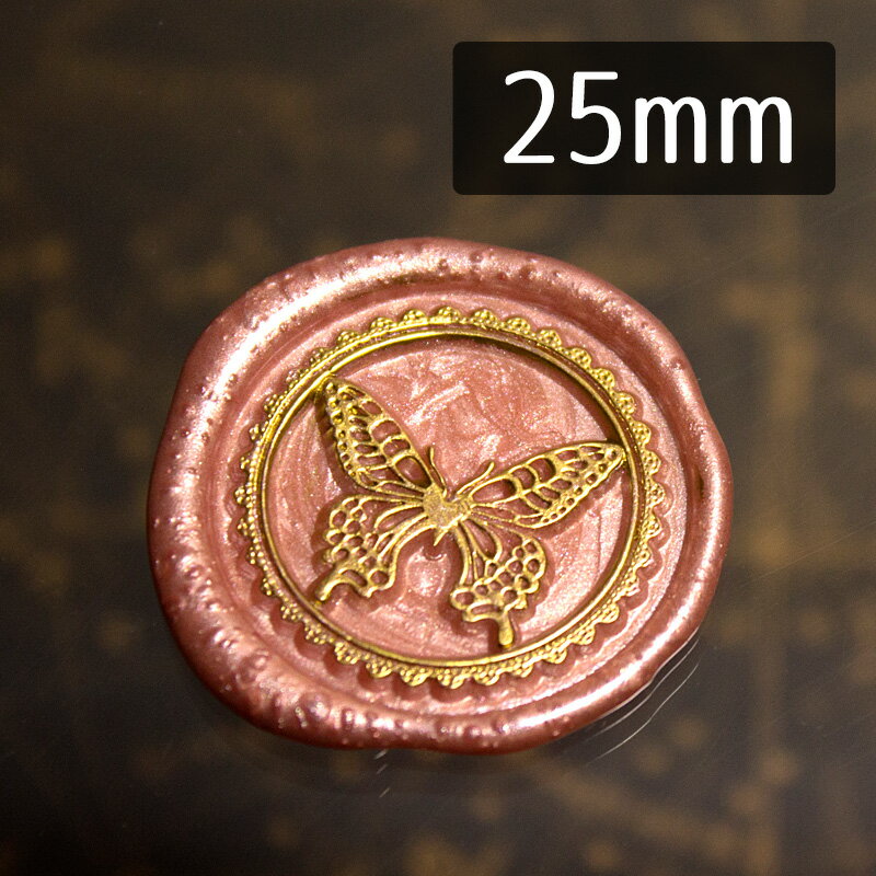 シーリングスタンプヘッド 1100169「蝶レース二重枠」2.5cm ヘッドのみ 封蝋印 真鍮製 真ちゅう製 ウェディング ちょうちょ 蝶々 バタフライ