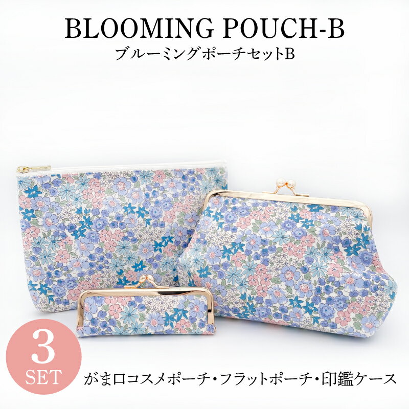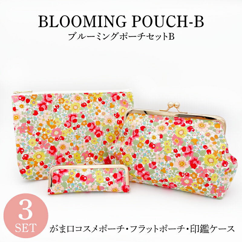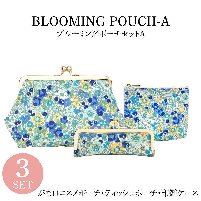 【ポーチ3点セットB】【ラッピング無料】 ギフトセット 印鑑ケース フラットポーチ がま口コスメポーチ 日本製 marie more 大人かわいい おしゃれ ギフト プレゼント メアリーモア 花柄 ブルーミング re-1803-41-b