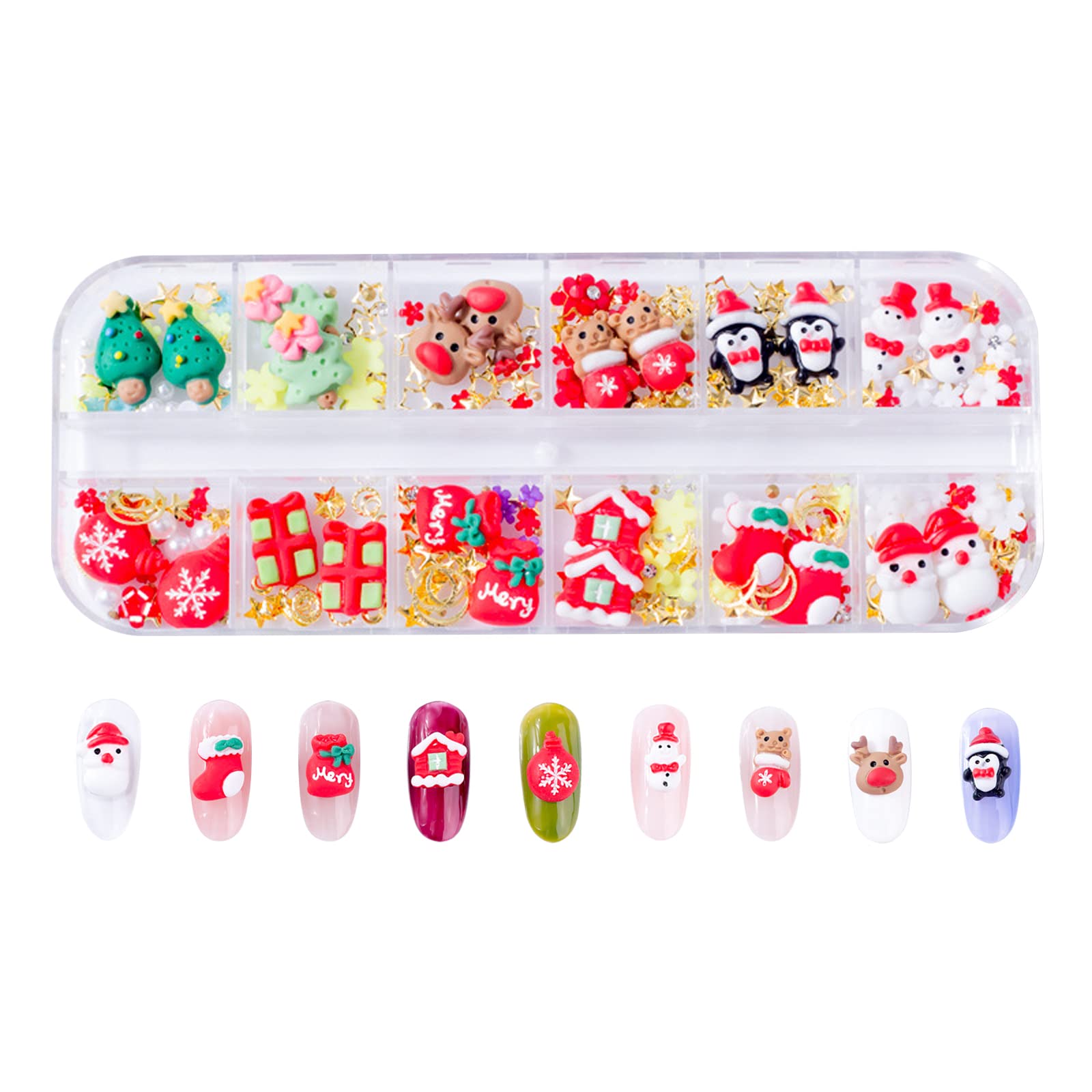 【送料無料】ネイルパーツ クリスマス 可愛い サンタ 雪だるま クリスマスツリー トナカイ ベル 3D 立体 大きい ネイルパーツ ストーン ネイルアート ジュエリーパーツ 手芸 ハンドメイド デコパーツ ネイル飾り 色:カラフル B