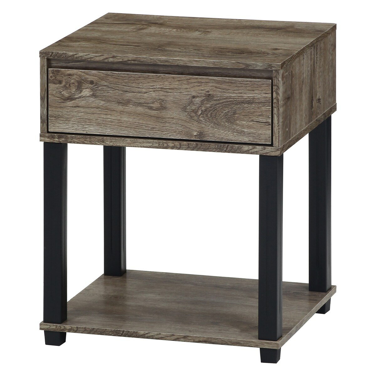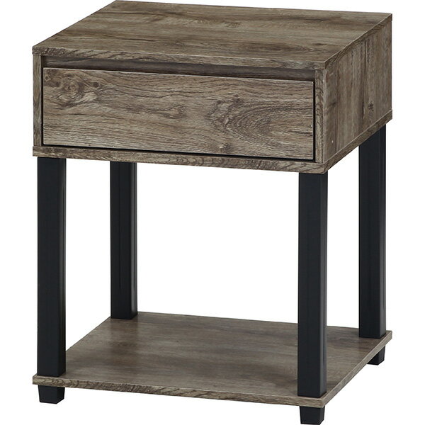 不二貿易 テーブル 幅45×奥行39.5×高さ55.1cm ナチュラル/ブラック サイドテーブル 木目調 引き出し付き FIT 70695