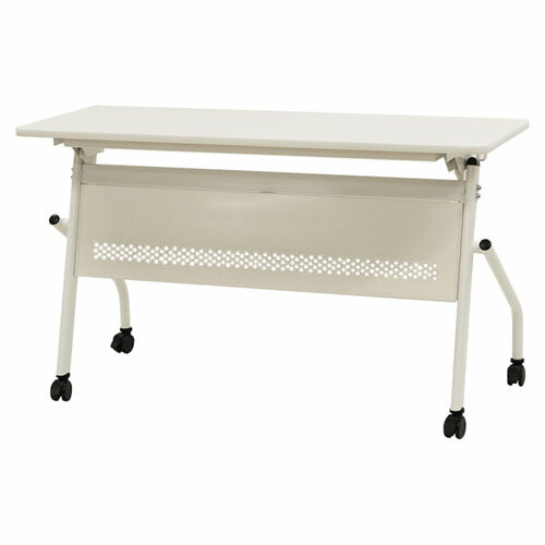 ダイヤ柄のパンチングが印象的な幕板付きです。全キャスターにストッパー付きでしっかり固定でき、脚のアジャスターでがたつきも防ぎます。手荷物をかけておける便利なサイドフック付きです。 外寸/幅1200×奥行600×高さ700mmカラー/ホワイト脚×ホワイト天板材質/天板:メラミン樹脂化粧板、エッジ:PVC貼り、脚:スチール(粉体塗装)、キャスター:ナイロン機能/キャスター付き、平行スタッキング、アジャスター、ワンタッチ折りたたみ、ストッパー付き、サイドフック付き質量/14.3kg耐荷重/天板均等耐荷重:40kg、フック:5kg組立品法人限定商品をご注文の際は、必ずお届け先名、またはお届け先ご住所に【法人・企業名・屋号】をご入力下さい。法人名が無い場合にはご連絡を差し上げる事があります。お届け先には法人名の確認ができる看板・表札が必要です。 沖縄県・離島を含む配送業者が配送不可とする地域、山間部等への配送、配送に特殊な作業・手続きが生じる場合は、対応出来ません。納品先にエレベータがないまたは積載不可の場合は、ご入居の建物1階(搬入口)でのお引渡しになります。※納品の日時指定は出来ません。※こちらの商品は個人宅へのお届けができかねます。