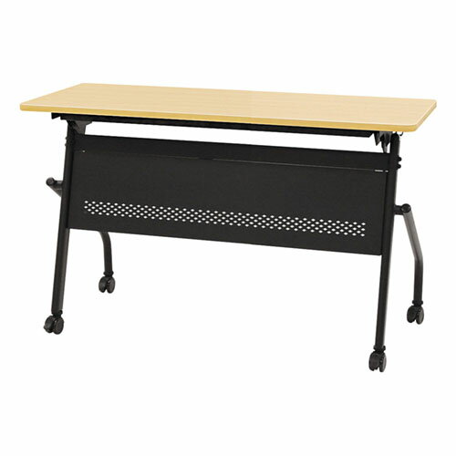ダイヤ柄のパンチングが印象的な幕板付きです。全キャスターにストッパー付きでしっかり固定でき、脚のアジャスターでがたつきも防ぎます。手荷物をかけておける便利なサイドフック付きです。 外寸/幅1200×奥行600×高さ700mmカラー/ブラック脚×ナチュラル天板材質/天板:メラミン樹脂化粧板、エッジ:PVC貼り、脚:スチール(粉体塗装)、キャスター:ナイロン機能/キャスター付き、平行スタッキング、アジャスター、ワンタッチ折りたたみ、ストッパー付き、サイドフック付き質量/14.3kg耐荷重/天板均等耐荷重:40kg、フック:5kg組立品法人限定商品をご注文の際は、必ずお届け先名、またはお届け先ご住所に【法人・企業名・屋号】をご入力下さい。法人名が無い場合にはご連絡を差し上げる事があります。お届け先には法人名の確認ができる看板・表札が必要です。 沖縄県・離島を含む配送業者が配送不可とする地域、山間部等への配送、配送に特殊な作業・手続きが生じる場合は、対応出来ません。納品先にエレベータがないまたは積載不可の場合は、ご入居の建物1階(搬入口)でのお引渡しになります。※納品の日時指定は出来ません。※こちらの商品は個人宅へのお届けができかねます。
