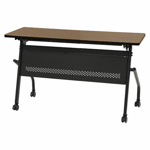 ダイヤ柄のパンチングが印象的な幕板付きです。全キャスターにストッパー付きでしっかり固定でき、脚のアジャスターでがたつきも防ぎます。手荷物をかけておける便利なサイドフック付きです。 外寸/幅1200×奥行600×高さ700mmカラー/ブラック脚×ウォールナット天板材質/天板:メラミン樹脂化粧板、エッジ:PVC貼り、脚:スチール(粉体塗装)、キャスター:ナイロン機能/キャスター付き、平行スタッキング、アジャスター、ワンタッチ折りたたみ、ストッパー付き、サイドフック付き質量/14.3kg耐荷重/天板均等耐荷重:40kg、フック:5kg組立品法人限定商品をご注文の際は、必ずお届け先名、またはお届け先ご住所に【法人・企業名・屋号】をご入力下さい。法人名が無い場合にはご連絡を差し上げる事があります。お届け先には法人名の確認ができる看板・表札が必要です。 沖縄県・離島を含む配送業者が配送不可とする地域、山間部等への配送、配送に特殊な作業・手続きが生じる場合は、対応出来ません。納品先にエレベータがないまたは積載不可の場合は、ご入居の建物1階(搬入口)でのお引渡しになります。※納品の日時指定は出来ません。※こちらの商品は個人宅へのお届けができかねます。