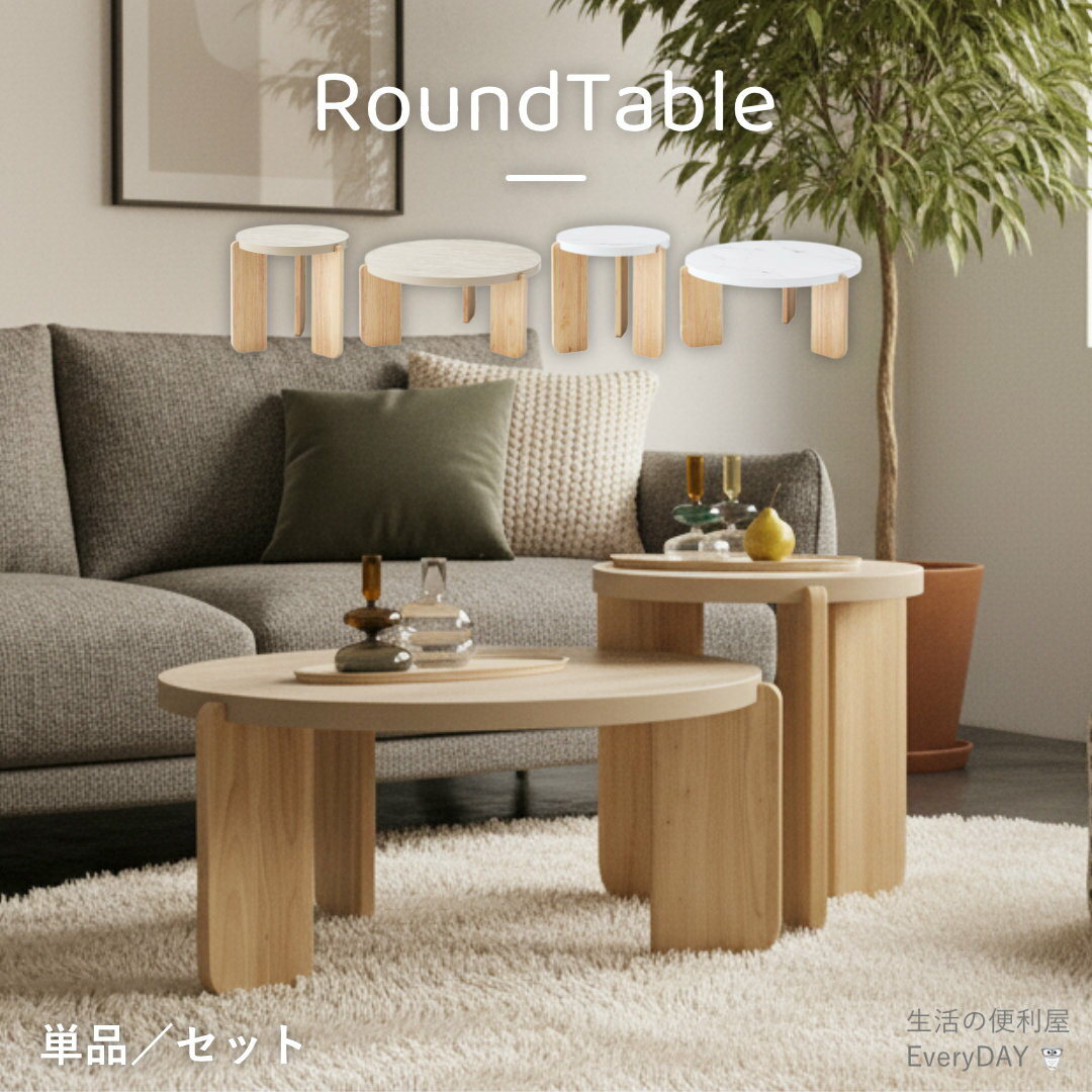【P20%還元!ブラックフライデー×DEAL】 ラウンドテーブル ネストテーブル コーヒーテーブル ソファテーブル センターテーブル サイドテーブル テーブル 大理石 調 石目調 天然木 シンプル 北欧 ナチュラル 韓国 丸 円 おしゃれ ベージュ センターテーブル 丸