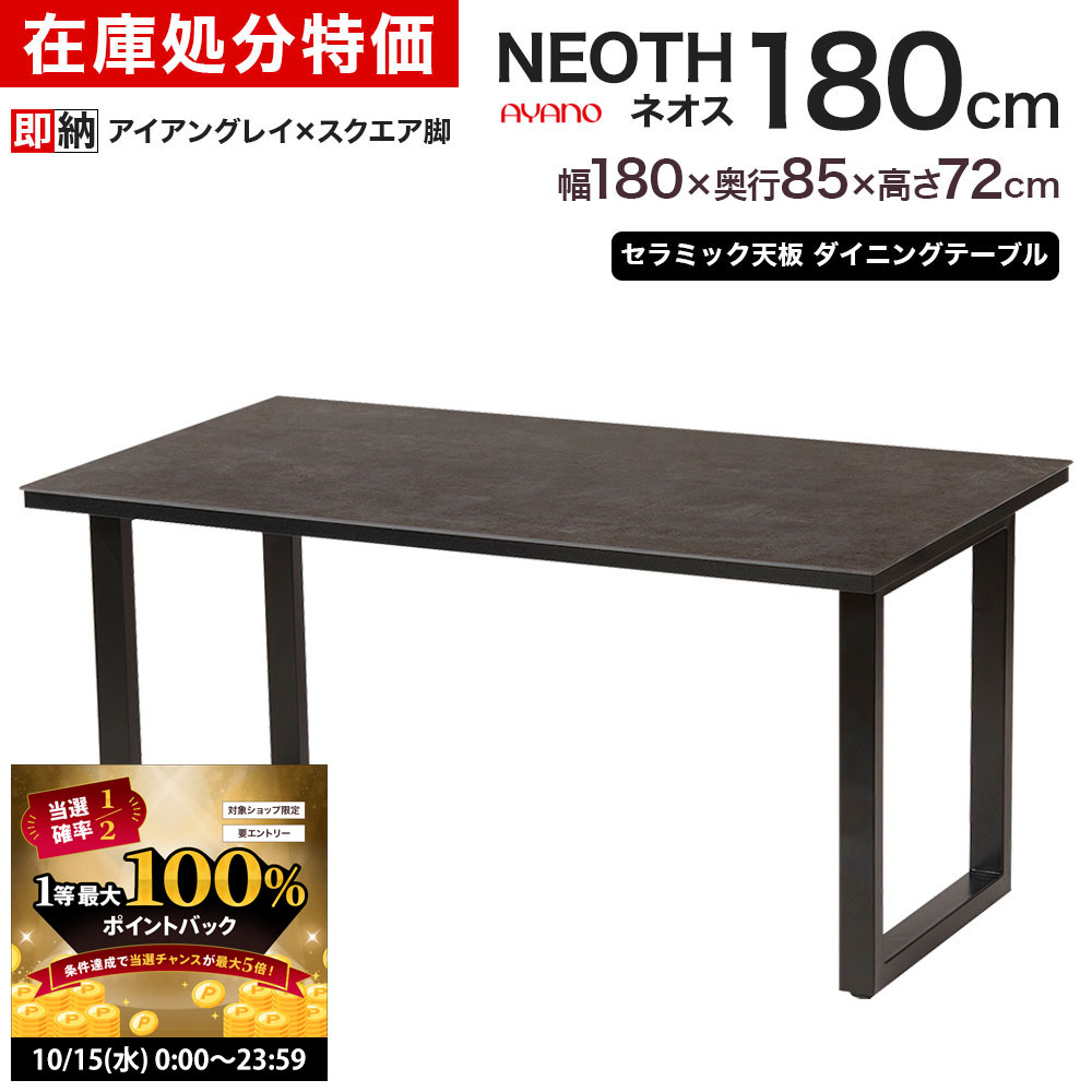 【10/15 2人に1人最大100%ポイントバック】【在庫処分セール】【アイアングレイ即納】ayano ダイニングテーブル セラミック 綾野製作所ネオス 幅180×奥行85×高さ72 or 70.7cm EQ-R180TQ スクエア脚 ポール脚