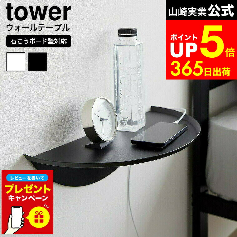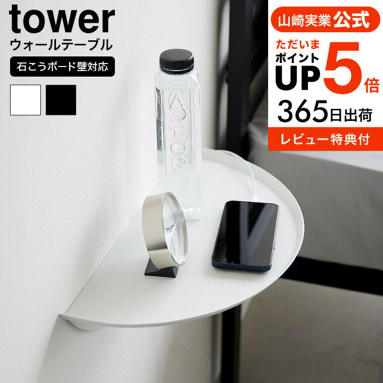 【365日出荷&当店限定特典付き】山崎実業 ウォールサイドテーブル タワー 石こうボード壁対応 tower 公式 ミニテーブル トレーテーブル ちょい置き スマホ置き リビング ベッドルーム 玄関 ホワイト ブラック 1937 1938