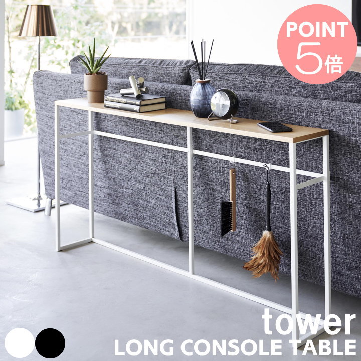 山崎実業 コンソールテーブル TOWER タワー ソファ裏 ロング 2026 2027 ソファ後ろ リビング ダイニング 廊下 玄関 棚 スリム 飾り棚 エントランス ラック シンプル コンソール 小物置き ディスプレイ ホワイト ブラック 白 黒 公式 タワーシリーズ 【ポイント5倍】