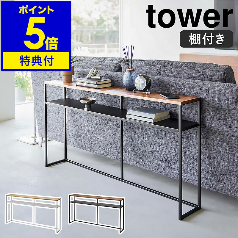 【365日出荷&豪華特典2個付き】山崎実業 ソファー裏コンソールテーブル 棚付き タワー tower 公式 飾り棚 ちょい置き 一時置き コンソールデスク ソファテーブル 省スペース 収納棚 ホワイト ブラック 2028 2029 yamazaki