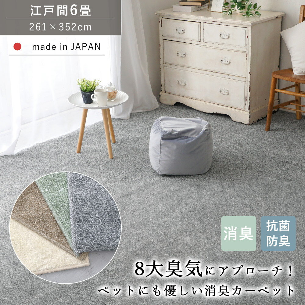 カーペット じゅうたん 絨毯 ラグ ラグマット 消臭 抗菌 防臭 江戸間6畳 6帖 261×352 ホットカーペット 床暖房対応 オールシーズン 敷き詰め 子ども 家族 ファミリー ペット リビング 高機能 日本製 秋 冬