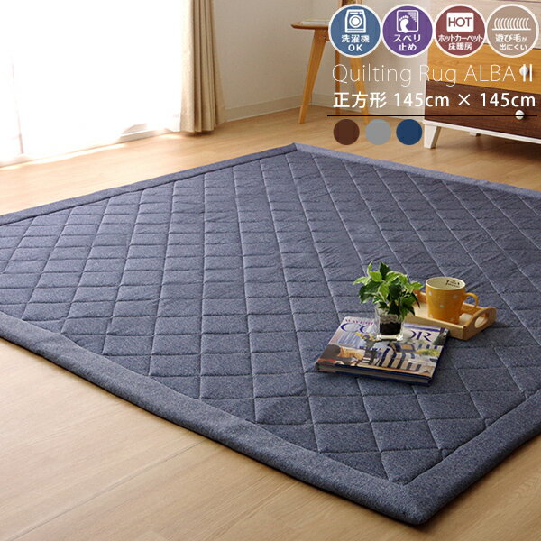 ラグ カーペット キルト もこもこ ふかふか キルティング カジュアル デニム 滑り止め おしゃれ モダン シンプル 床暖房 ホットカーペット対応 2畳 正方形 145cm×145cm