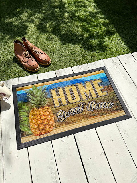 ハワイが好きになると家中のインテリアをハワイアンにしたくなる! リビングやキッチン、洗面所にトイレ・・・・ありとあらゆる場所が次々とハワイ色に染まっていくのがたまらない! 当然、毎日出入りする玄関だってその対象だから、足元にはハワイを感じられる玄関マットが欲しいところ! 今回、現地ハワイで見つけてきたのは「靴のままで使うタイプのマット」で、ハワイのローカルな雰囲気を感じられる逸品なんです。 発色の良いプリントがされてるおかげでマットを敷くって感覚よりも、玄関にハワイアンアートを飾るってノリ! ハワイ好きなら、まさにこういうのを求めてたでしょ? 玄関に大っきなパイナップルってのが、これまたメチャ可愛いのよねー 表面のプリント部分はワッフル状に凹凸が作られていて、靴裏の泥や埃をキャッチしてくれ、ひっくり返して叩けば掃除も楽そうな構造になってます。 裏面はラバー素材だからある程度の重みもあって、ずれにくい滑り止め付きと合わせてしっかりとマットを固定してくれそうな作りになっています。 部屋の中で使うマットだとハワイアン柄もよく目にするんだけど、靴のままで使うタイプのマットはあまり見かけることがないので、ずっと探してた人はこの機会にぜひ! 帰宅する度に大好きなハワイがアナタを出迎えてくれますよ!(〃 ̄▽ ̄〃) サイズ:横74.5cm×縦44.5cm(約) 材質:PVC類似商品はこちらハワイアン ラバーマット アメリカン雑貨 ア5,390円ハワイアン ラバーマット アメリカン雑貨 ア5,390円ハワイアン ラバーマット アメリカン雑貨 ア5,390円ハワイアン ラバーマット アメリカン雑貨 ア5,390円ハワイアン エコバッグ アメリカン雑貨 アメ1,430円ハワイアン パイナップル コースター 単品 ア770円パイナップル インフレータブル アメリカン雑貨660円ハワイアン アイランド ステッカー アメリカ660円マーキュリー コイヤーマット アメリカン雑貨2,750円新着商品はこちら2026/2/15アメリカの踏切ライト オブジェ ※電池カバーの4,180円2026/2/15バンダナ柄 収納バスケット 小物入れ2,200円2026/2/15バンダナ柄 折りたたみ式 マガジンラック3,080円再入荷はこちら2026/2/13NICI ニキ ファーストフードキャラクター 6,754円2026/2/13NICI ニキ ファーストフードキャラクター 4,052円2026/2/13NICI ニキ ファーストフードキャラクター 1,351円2026/02/15 更新