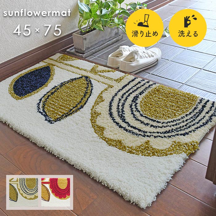 玄関マット サンフラワーマット 45×75 cm 洗える 北欧 DESIGN LIFE 日本製 スミノエ製 防ダニ 滑り止め 送料無料