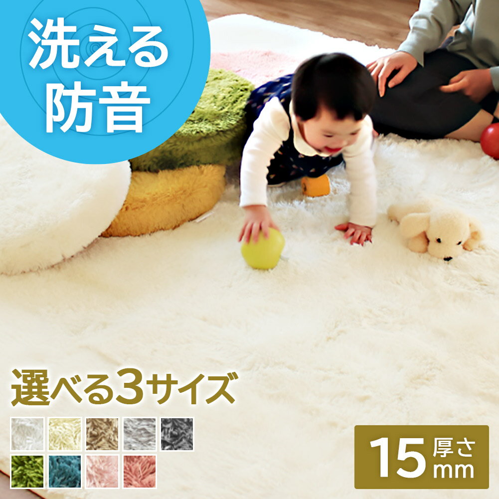 ラグ ラグマット 洗える 厚手 オールシーズン 防音カーペット シャギー グレー グリーン 滑り止め ホワイト 白 正方形 冬用 北欧 おしゃれ 小さめ 子供 130 185 185 200 250 cm 洗濯機 カバー 子ども部屋 軽量 一人暮らし ラッテボリューム