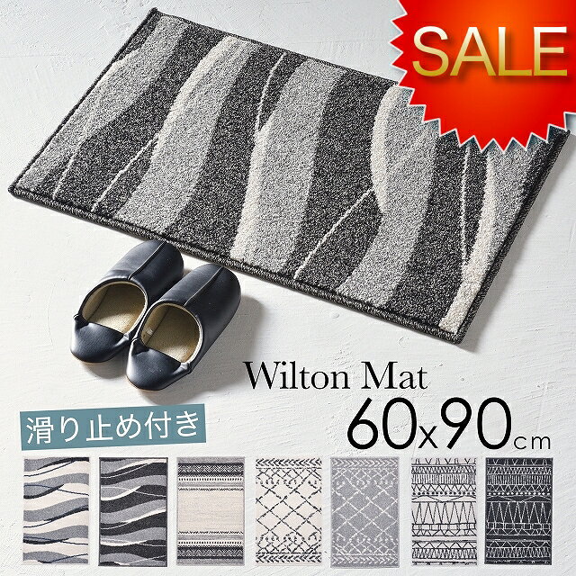 玄関マット 室内 おしゃれ かわいい ウィルトン織 玄関 マット モダン 北欧 ベニワレン ベニワレン風 60x90 60X90 滑り止め付き 滑り止め