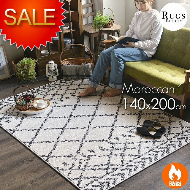 カーペット 絨毯 ラグ おしゃれ モロッカン 柄 ベニワレン 北欧 ベニオワレン ベニワレン風 モロカン 暖かい 冬 1.5畳 140x200 長方形 ホワイト 厚手 リビングラグ ウィルトン織 ウィルトン織ラグ センターラグ 韓国インテリア にも 防炎
