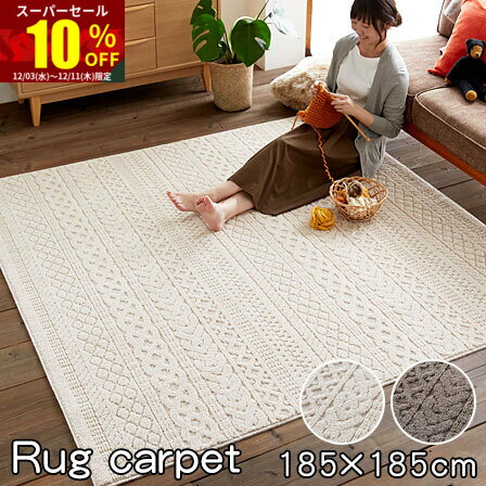 ★スーパーセール 10%OFF★日本製 防ダニ ニット柄 ラグカーペット カレン 正方形 185×185cm 洗える ラグマット 洗濯 絨毯 マット じゅうたん 柄 ホットカーペット対応 床暖対応 子供部屋 リビング 子供 オシャレ/一人 おしゃれ 北欧 モダン デザイン シンプル 人気