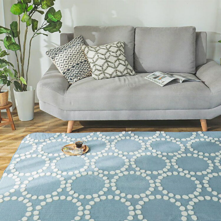 ベーレ 190x190 ブルー 大人可愛いラグ リビングラグ 洗える すべり止め オールシーズン ウレタン ホットカーペット 床暖房 おしゃれ シンプル レトロ モダン 高級感