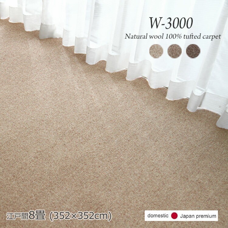 アウトレット特価 W3000 日本製 ウール100%高級カーペット 江戸間8畳 352×352cm