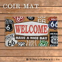 ルート66 wlcome ココマット アメリカン雑貨 マット 玄関 室内 屋外 滑り止め インテリア 玄関マット コイヤーマット 西海岸 カリフォルニア バイク 車 ガレージ 男前インテリア おしゃれ ココヤシ ナチュラル雑貨