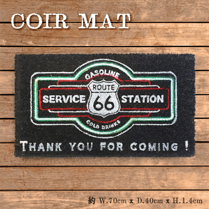 ルート66 ココマット アメリカン雑貨 マット 玄関 室内 屋外 滑り止め インテリア 玄関マット コイヤーマット 西海岸 カリフォルニア ROUTE66 バイク 車 ガレージ 男前インテリア おしゃれ ココヤシ ナチュラル雑貨 【ROUTE66 ココマット / 66SERVICE STATION】ココナッツ繊維でできたコイヤーマットです。自然の素材にカッコいいデザインで大人気です! ココヤシ(ヤシの実の表皮繊維)を使用したマットです。室内外を問わず、玄関やフロアーにも使用されています。裏面はPVCラバーによる滑り止めが付いています。※ルート66シリーズで、他の種類も出品しています。ぜひ、チェックしてみてください!【SIZE】:約 W.70cm x D.40cm x H.1.4cm【素材】:ココヤシ(ココナッツの外皮の繊維)【裏面素材】:PVCゴム【生産地】:インド【検索ワード」: ココマット コイヤーマット ココヤシ アメリカン ルート66 ROUTE66 ルート66マット アメリカン雑貨 ココナッツマット USA カリフォルニア ガレージ 西海岸 LA アメ雑 屋外マット 玄関マット 泥よけ アメリカンバイク 2