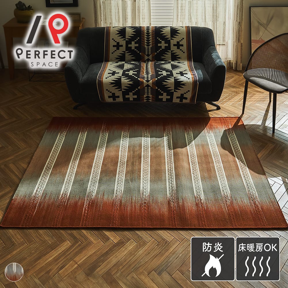 ラグ カーペット 室内 防炎 床暖房OK オールシーズン ウール 天然素材 ベーシック ネイティブ 幾何学柄 ストライプ おしゃれ グラデーション リビング 一人暮らし ブラウン 100×150 130×190