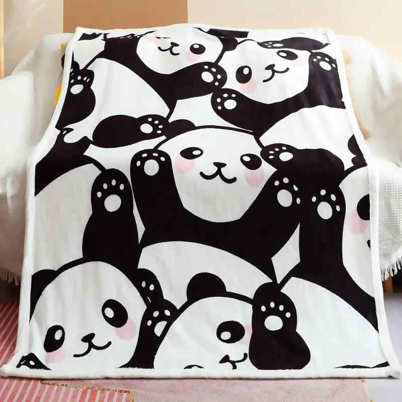 毛布 キッズ 男の子 女の子 パンダ プリント フランネル ブランケット ポリエステル 合成繊維 軽量 柔らかい 四季用 シンプル