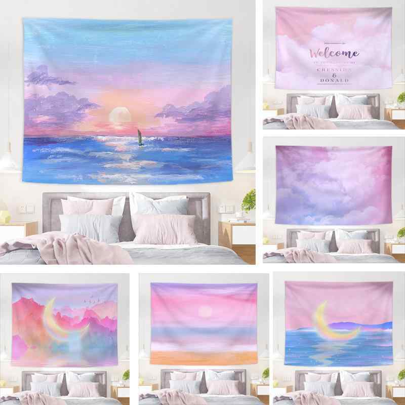 ウォールタペストリー インスタ風 かわいい ガーリー ピンク 月柄 夢幻 壁掛け 部屋飾り ルームデコレーション ポリエステル製 長方形 ウォッシャブル ヨーロピアンテイスト