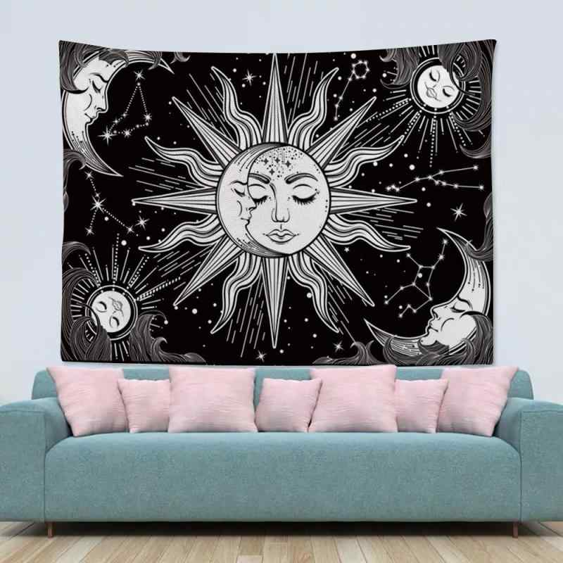 タペストリー 3D デジタルプリント ボヘミアン 北欧 エスニック調 ポリエステル製 リビング 寝室 装飾 ウォールデコレーション 背景布 長方形 月 太陽 星 占星術
