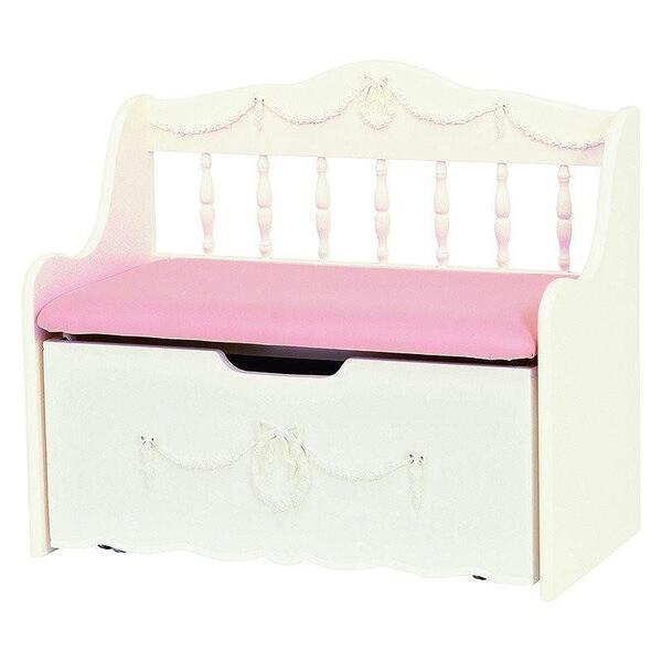 キッズベンチチェスト収納家具 長椅子 ベンチチェアー 白棚椅子 チェア インテリア レザー 白家具 RH-1850WH 女の子 女児 アンティーク風 プリンセス お姫様