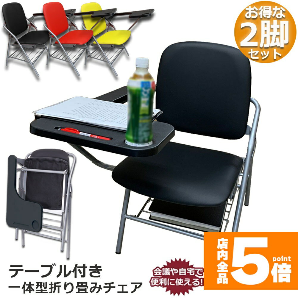 ★期間限定!ポイント5倍&10倍★折りたたみ椅子 2個セット テーブル 付き 完成品 人工皮革 PU製 スポンジクッション付き 折りたたみチェア 背付き 組み立て不要 メモ台付き 軽量 コンパクト 収納 会議 収納 パイプ椅子 パイプイス