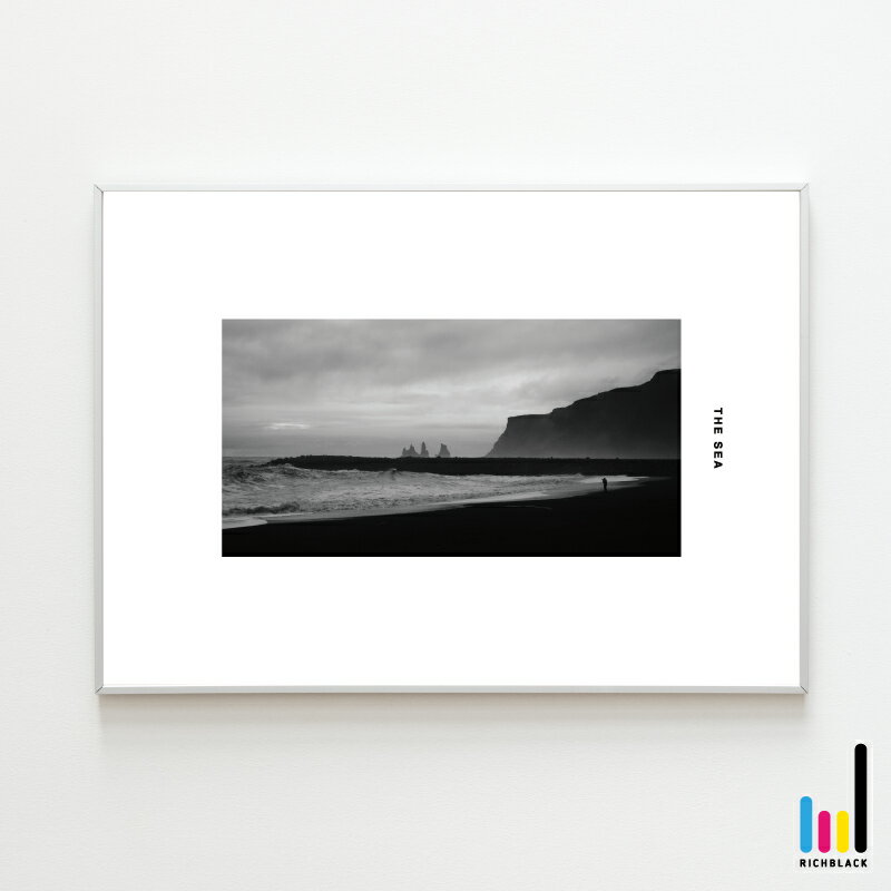 海 "THE SEA" モノトーン 写真 プリント ポスター [ A3 ]砂浜 ビーチ サーフ サーフィン インテリア 雑貨 モノクロ 白黒 シンプル 自然 大判 特大 フレーム ナチュラル インテリアアート 壁掛け おしゃれ 男前インテリア