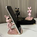 スマホスタンド 女性用 かわいい うさぎ キャラクター 樹脂製 置物 卓上飾り オフィス デスク リビング 寝室 安定感抜群 スマホ置き 小物置き ピンク ホワイト ブラック おしゃれ ギフト 誕生日 プレゼント