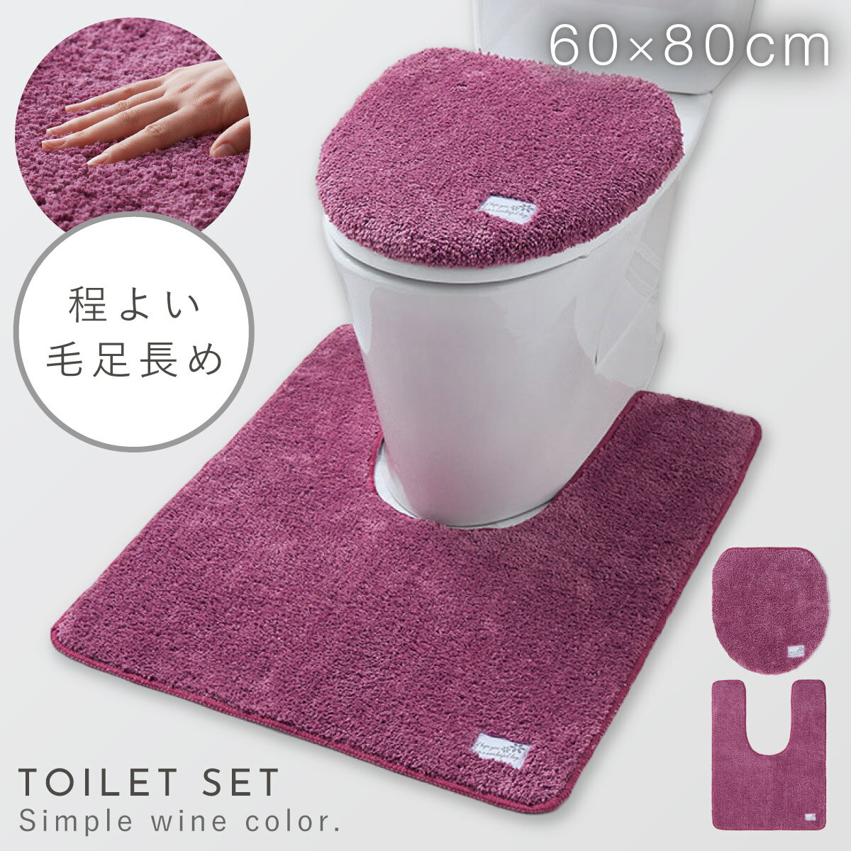 トイレマット フタカバーセット 2点セット 60×80cm 耳長 トイレ フタカバー 蓋 カバー すべらない 滑り止め 洗える 赤 ワインレッド おしゃれ 耳長トイレマット・フタカバーセット プレーン ワイン