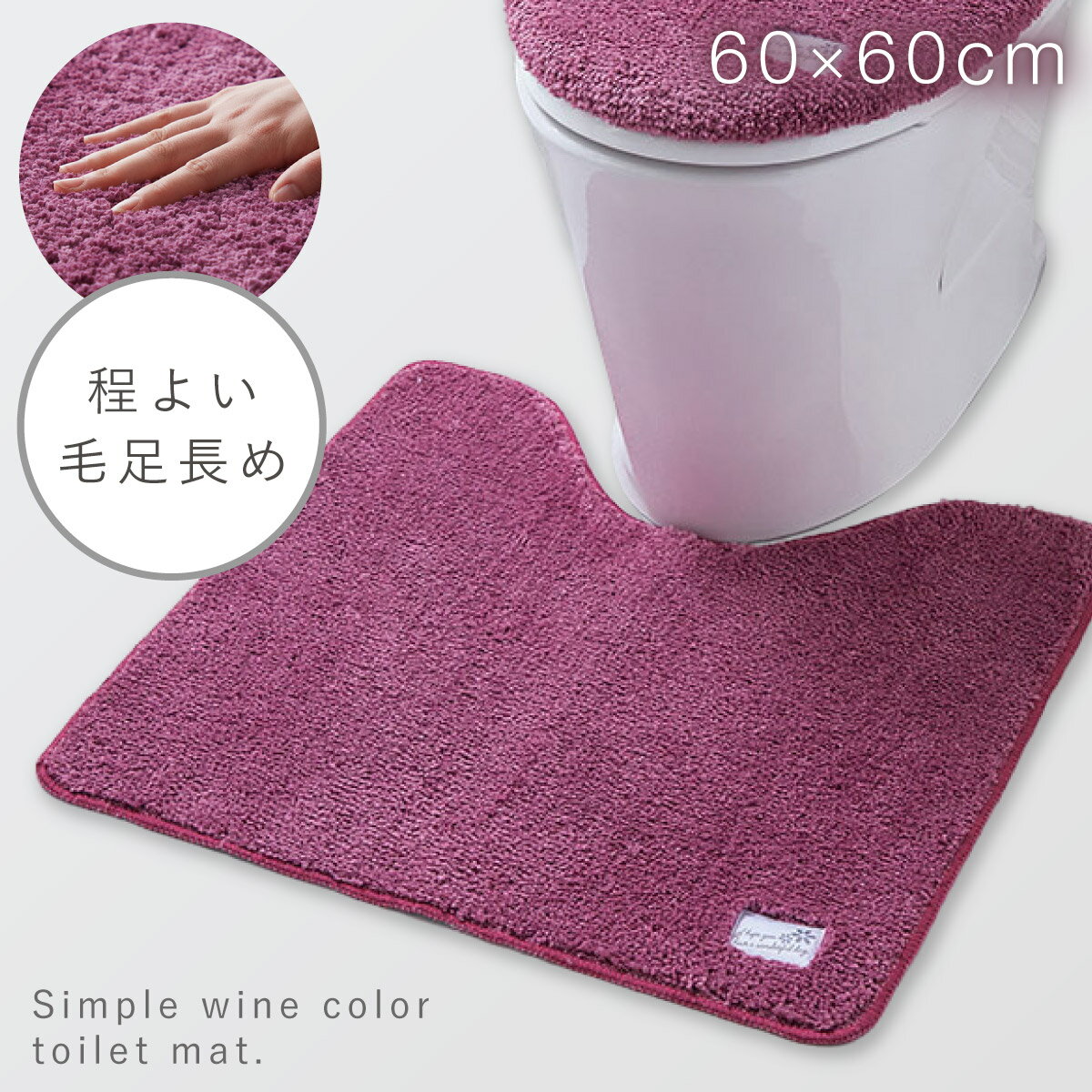 トイレマット 60×60cm すべらない 滑り止め 洗える 赤 ワインレッド おしゃれ レギュラートイレマット プレーン ワイン