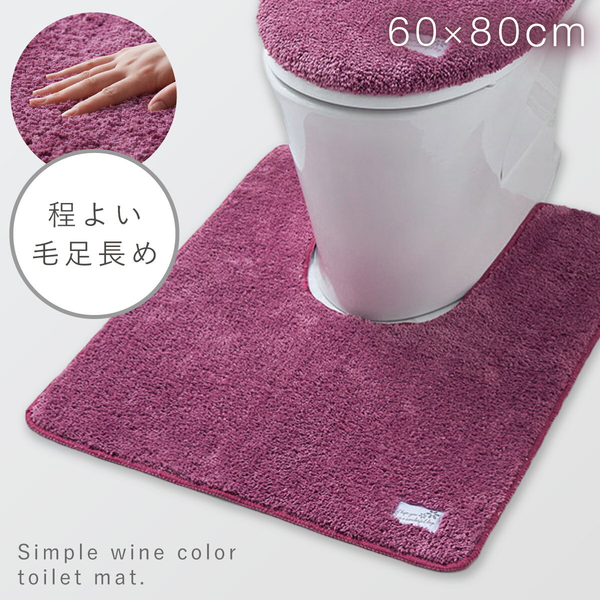 トイレマット 60×80cm 耳長 すべらない 滑り止め 洗える 赤 ワインレッド おしゃれ 耳長トイレマット プレーン ワイン