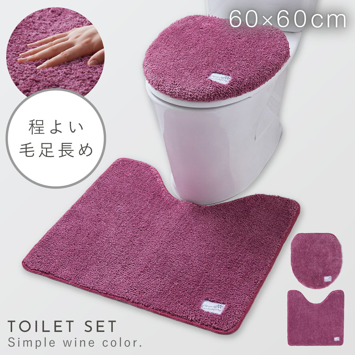トイレマット フタカバーセット 2点セット 60×60cm トイレ フタカバー 蓋 カバー すべらない 滑り止め 洗える 赤 ワインレッド おしゃれ レギュラートイレマット・フタカバーセット プレーン ワイン