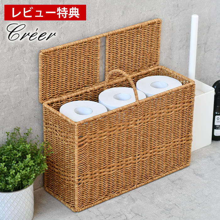 【レビュー特典付】 トイレットペーパー 収納 かご クレエ creer ユティルナイール ハンドル付ペーパーボックス ストック オシャレ サニタリー かわいい 整理 6個 ナチュラル ケース 手編み 北欧 スリム 蓋付き インテリア