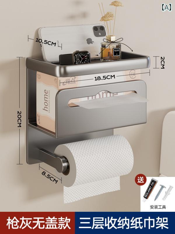 トイレットペーパーホルダー 壁掛け式 浴室収納 穴あき不要 アルミニウム製 コンパクト シンプル 耐久性 軽量 トイレ用品 日常使い 省スペース モダン