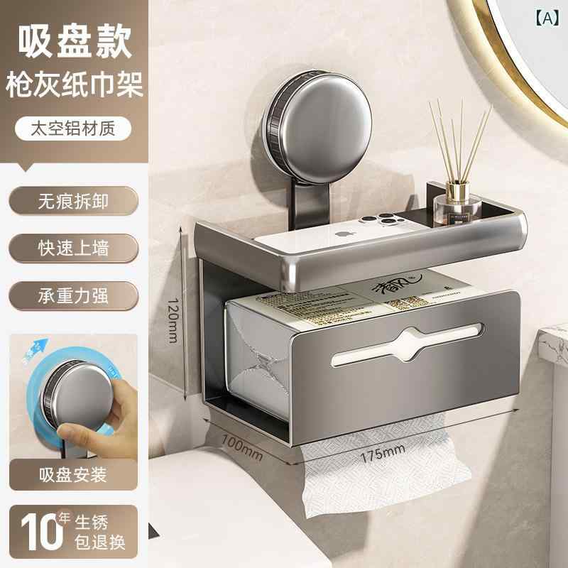 浴室用 吸盤式 トイレットペーパーホルダー 壁掛け 穴あけ不要 収納ラック ティッシュボックス 簡単設置 スペースセービング 防水 耐久性 日常使い