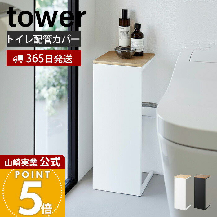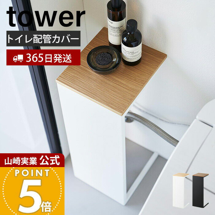 【365日出荷】山崎実業 目隠しトイレ配管カバー タワー tower 公式 トイレカバー 配管隠し 天然木 木目 天板 芳香剤 ペーパー 収納 幅18cm コンパクト スチール おしゃれ ホワイト ブラック 5223 5224