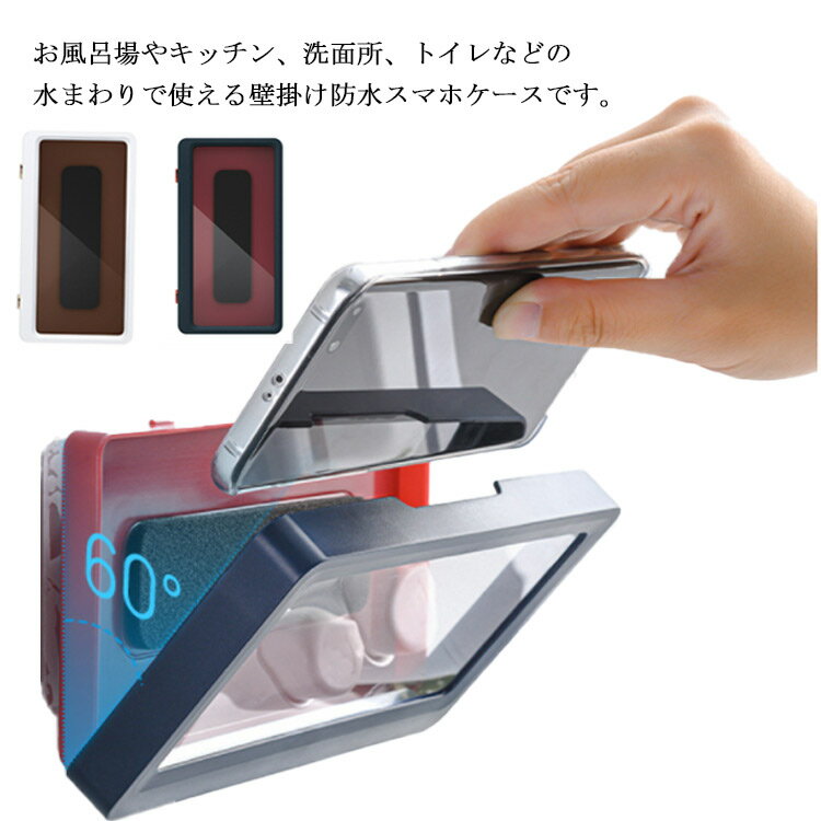 お風呂場やキッチン、洗面所、トイレなどの水まわりで使える壁掛け防水スマホケースです。シリコンゴムを使った2重構造の防水加工、カバーをしたままタッチスクリーン対応により、お風呂場で湯船に浸かりながら、シャワーを浴びながら動画や映画をお楽しみいただけます。キッチンの壁に取り付ければ、スマホでレシピを見ながら料理も作れます。強力な壁面粘着シールを張り付けて設置するので、取り付け簡単、穴あけ不要です。 サイズFサイズについての説明F 19*10.5*2.8cm 6.8インチ以下のスマホ対応 素材ABS PET色ホワイト ブルー備考 ●サイズ詳細等の測り方はスタッフ間で統一、徹底はしておりますが、実寸は商品によって若干の誤差(1cm〜3cm )がある場合がございますので、予めご了承ください。●製造ロットにより、細部形状の違いや、同色でも色味に多少の誤差が生じます。●パッケージは改良のため予告なく仕様を変更する場合があります。▼商品の色は、撮影時の光や、お客様のモニターの色具合などにより、実際の商品と異なる場合がございます。あらかじめ、ご了承ください。▼生地の特性上、やや匂いが強く感じられるものもございます。数日のご使用や陰干しなどで気になる匂いはほとんど感じられなくなります。▼同じ商品でも生産時期により形やサイズ、カラーに多少の誤差が生じる場合もございます。▼他店舗でも在庫を共有して販売をしている為、受注後欠品となる場合もございます。予め、ご了承お願い申し上げます。▼出荷前に全て検品を行っておりますが、万が一商品に不具合があった場合は、お問い合わせフォームまたはメールよりご連絡頂けます様お願い申し上げます。速やかに対応致しますのでご安心ください。