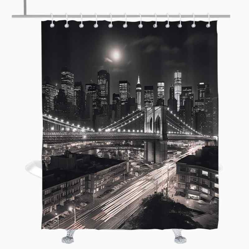 シャワーカーテン メンズ 男性用 モノクロ ニューヨーク 夜景 ブルックリン マンハッタン おしゃれ モダン シンプル ハトメ付き フック付属 ポリエステル製 インテリア