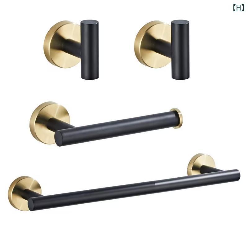毛巾ラック タオル掛け タオルリング ペーパーホルダー ステンレス製 壁掛け式 ゴールド系 3点セット おしゃれ 高級感