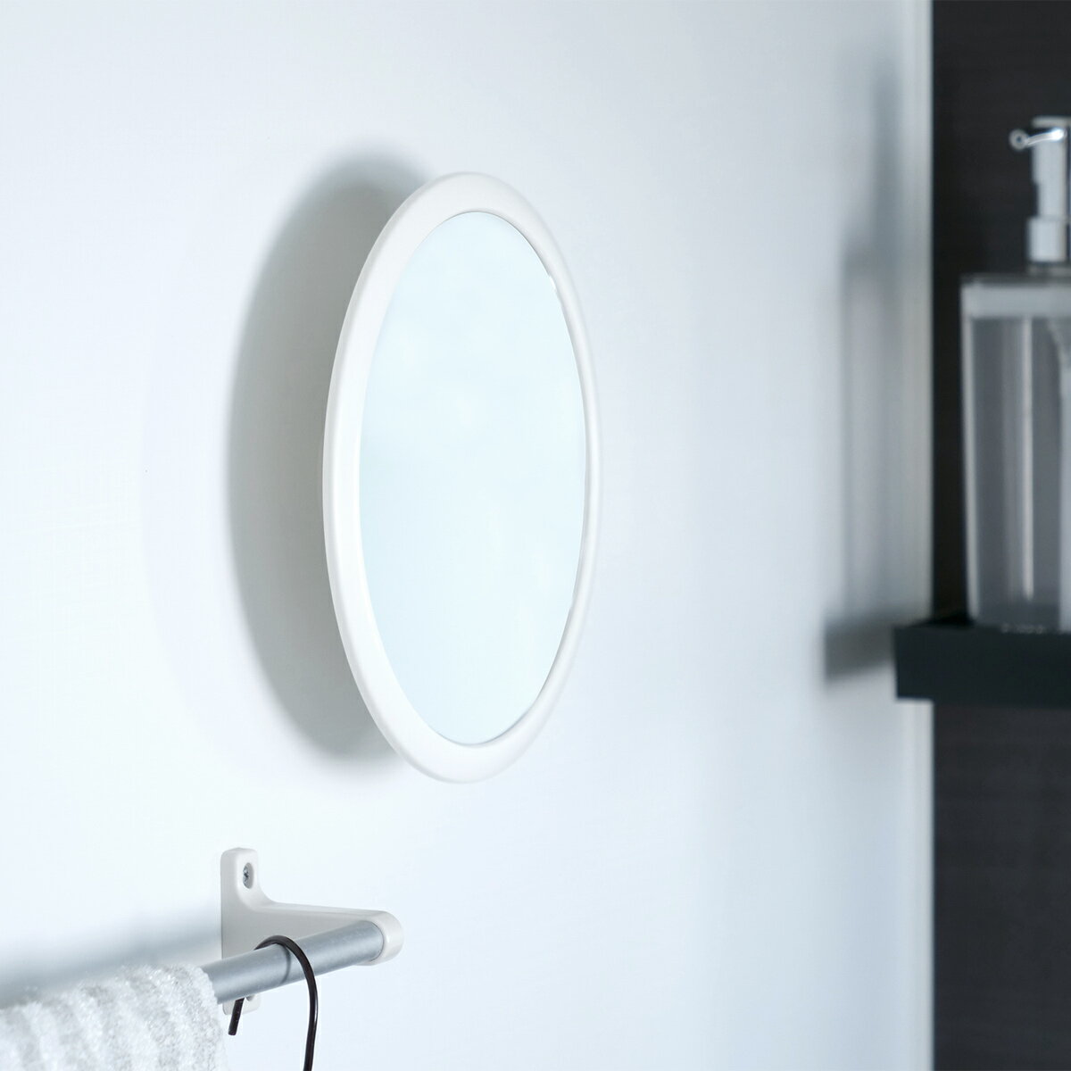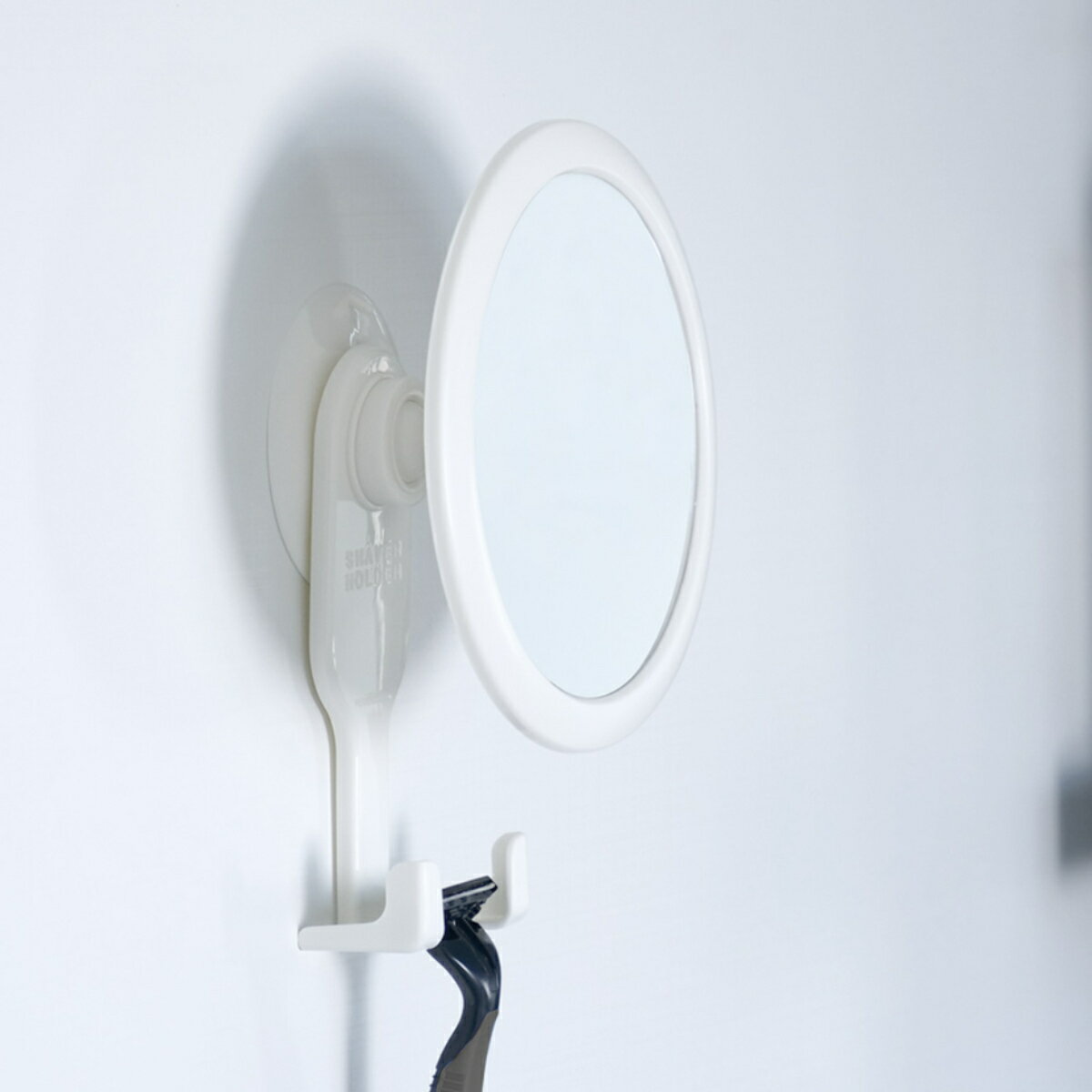 ミラー お風呂 樹脂製 割れない+くもらない フレームミラー 直径13.1cm 吸盤 ( 鏡 風呂 くもり止め バスミラー 丸 割れない くもらない 日本製 角度調節 フック付 壁掛け 壁掛け鏡 かがみ カガミ 壁面 シンプル ) 【39ショップ】